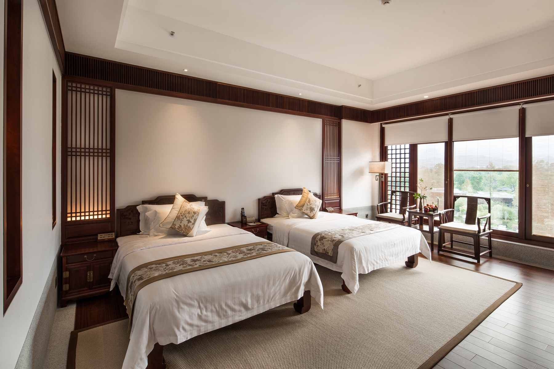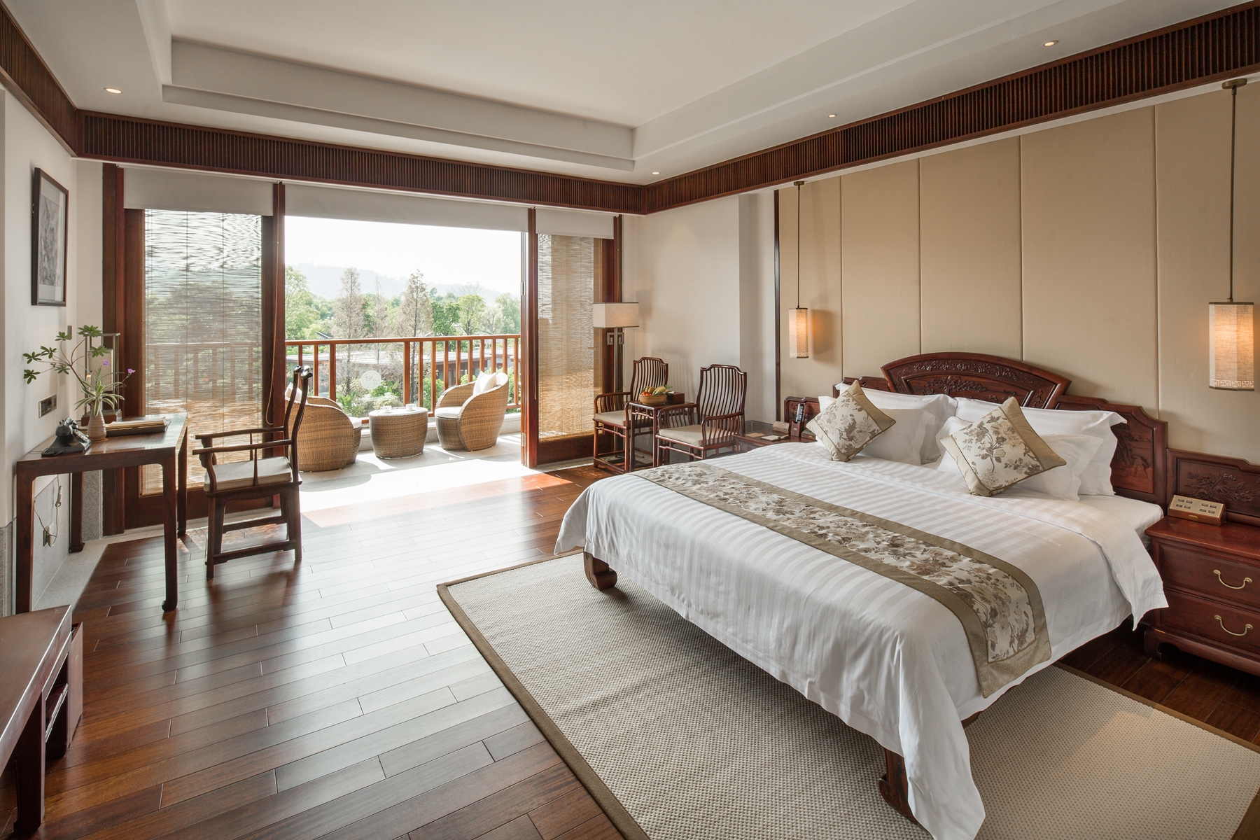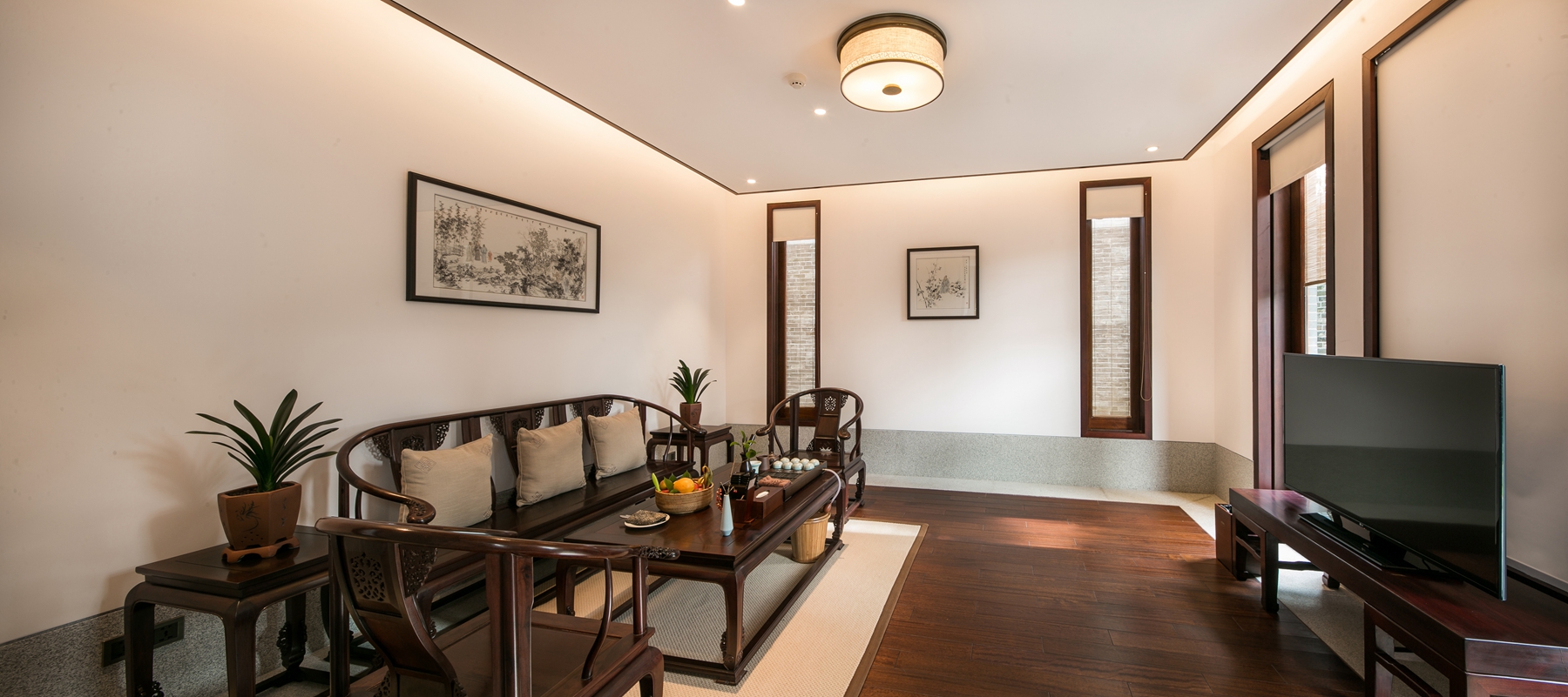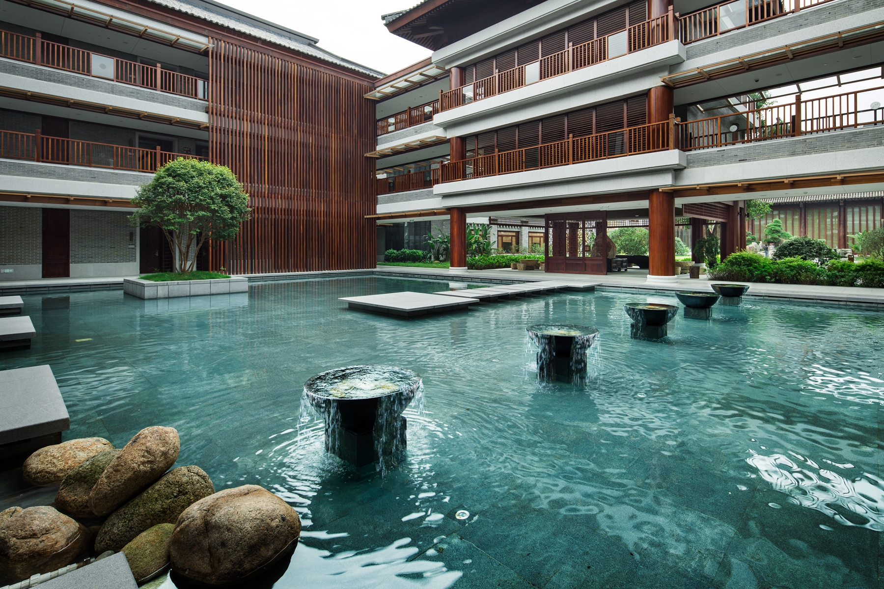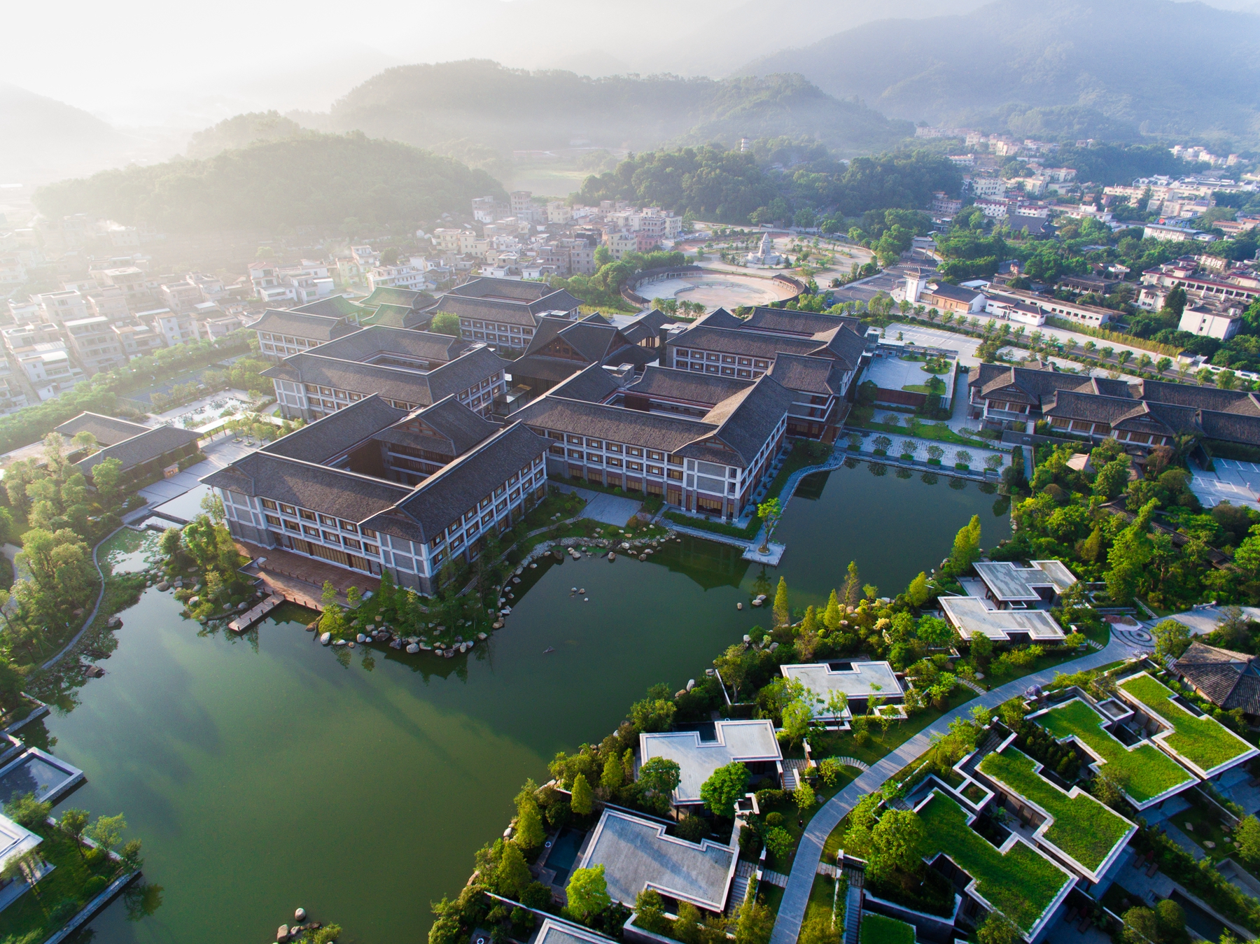 The project consists of functional clusters including Chanquan Resort Hotel, Chanquan Boutique Hotel (villas), Chanquan Hot Spring Club, Yangdao International SPA, catering, fitness, and leisure & entertainment facilities. There are 28 boutique villas featuring Lingnan courtyard style. Among them, the Sixth Patriarch Zen Residence Villa covers an area of 2,380 square meters, equipped with a full set of customized rare mahogany furniture and utensils. It boasts an elegant, grand yet understated style, imbued with the charm of Cantonese style and Zen.